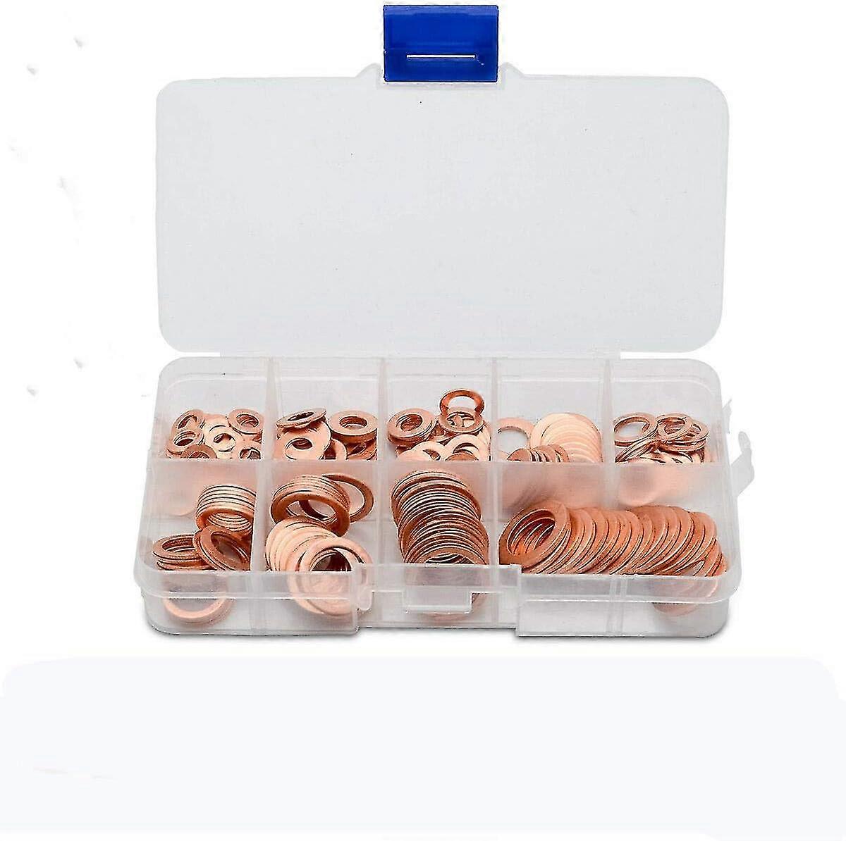 200 Pcs Copper Washers Engine Seal Flat Ring Gasket Fastener Metric Sealing Washer Assortment Set