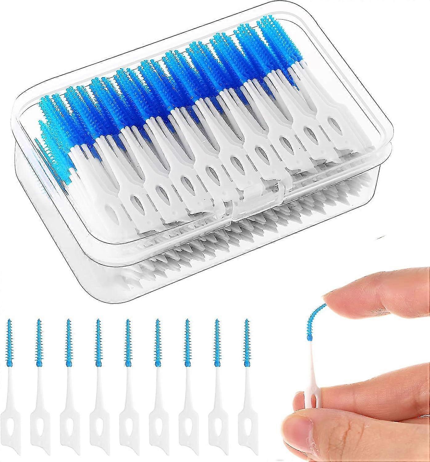 200 Pieces Interdental Brushes, Silicone Dental Brushes Blue Tooth Floss Picks