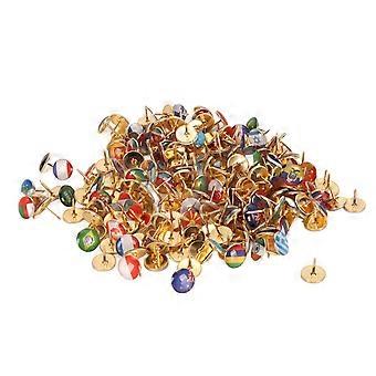200Pcs National Flag Thumb Tacks Clear Pattern Stainless Steel Box Packed Country Flag Push Pins for Office Decoration