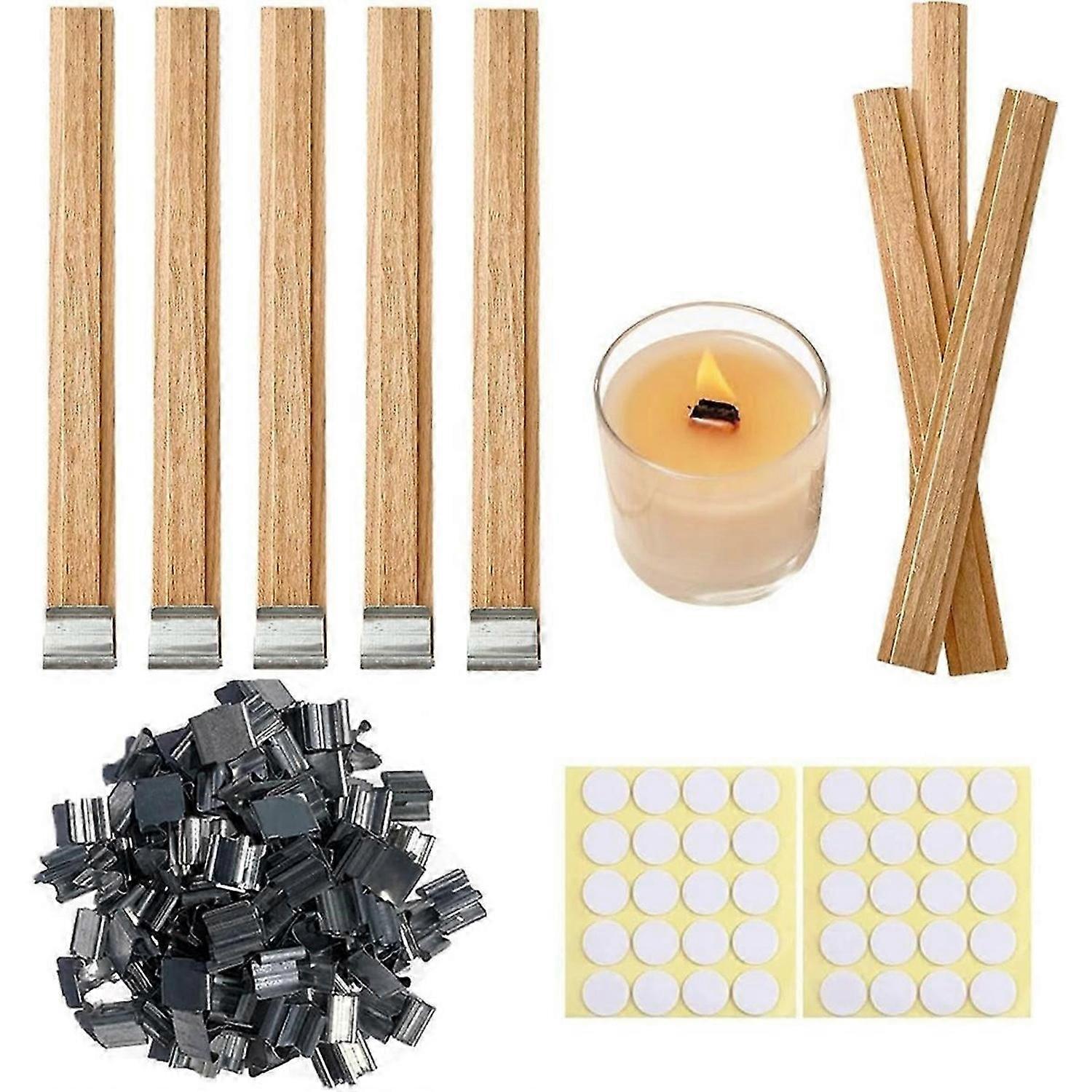 200 Sets Double-Layered Wooden Candle Wicks and Stands 5.1x0.5 Inch Natural Candle for Candles Making,Wooden Candle Wick