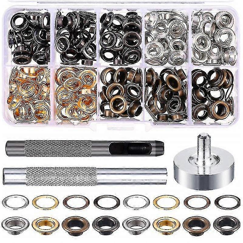 200 Set 6 Mm Metal Grommets Eyelets Kit With A Base And Punch Hole Tool And Installation Tool Repai-YGWL
