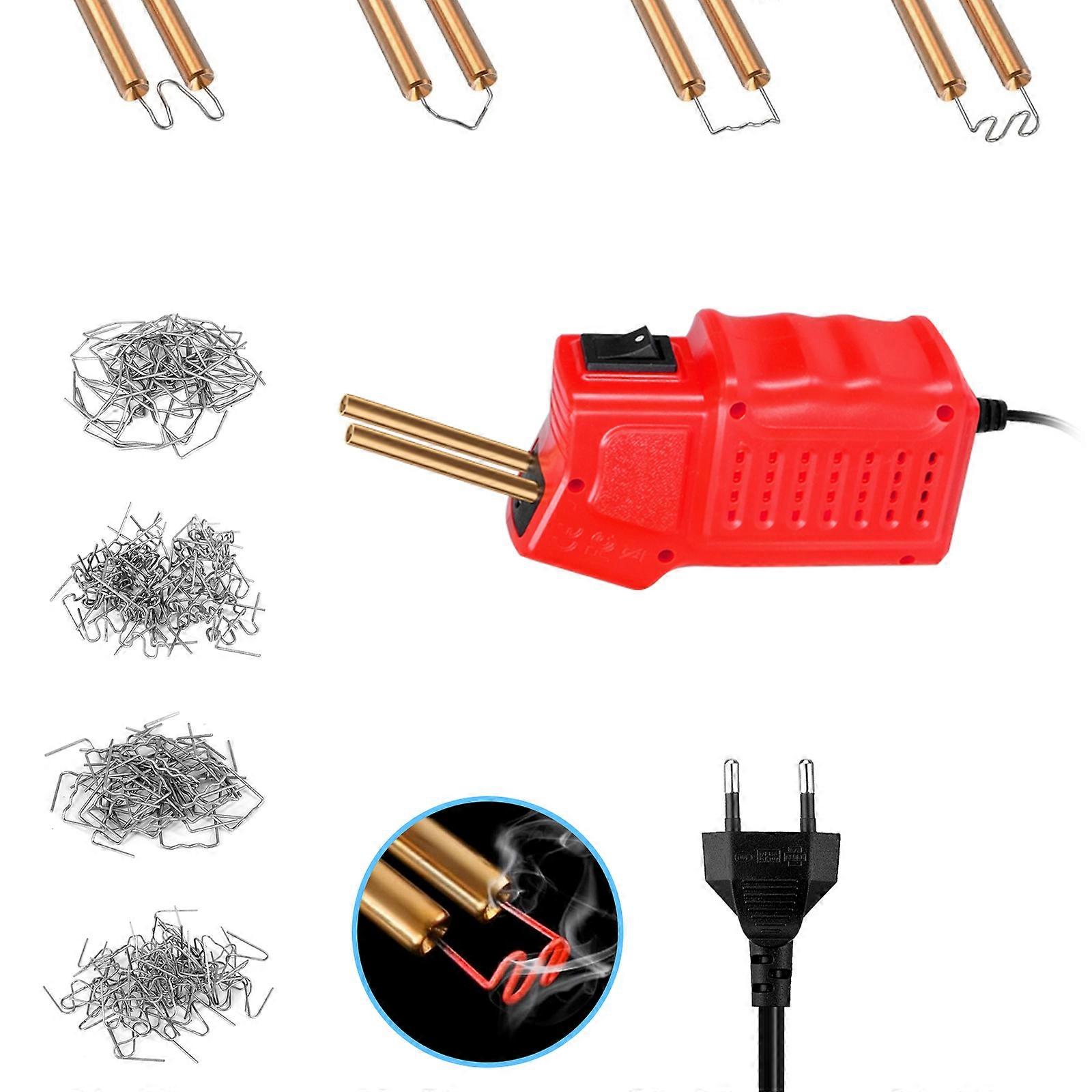 Plastic Welder, Plastic Welding Kit with 200PCS Hot Staples, Mini Handheld Welding Machine for Car Bumper Plastic Crack Repair (Red, EU Plug)