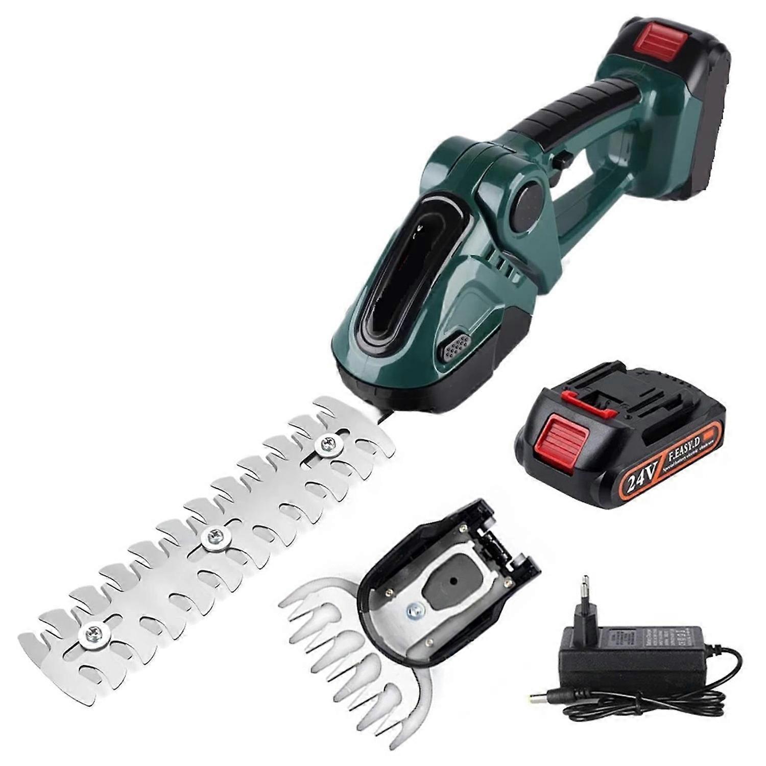 20000RPM 2-in-1 Electric Grass Hedge Trimmer Handheld Garden Pruner Tool,1 Battery-EU Plug/Green