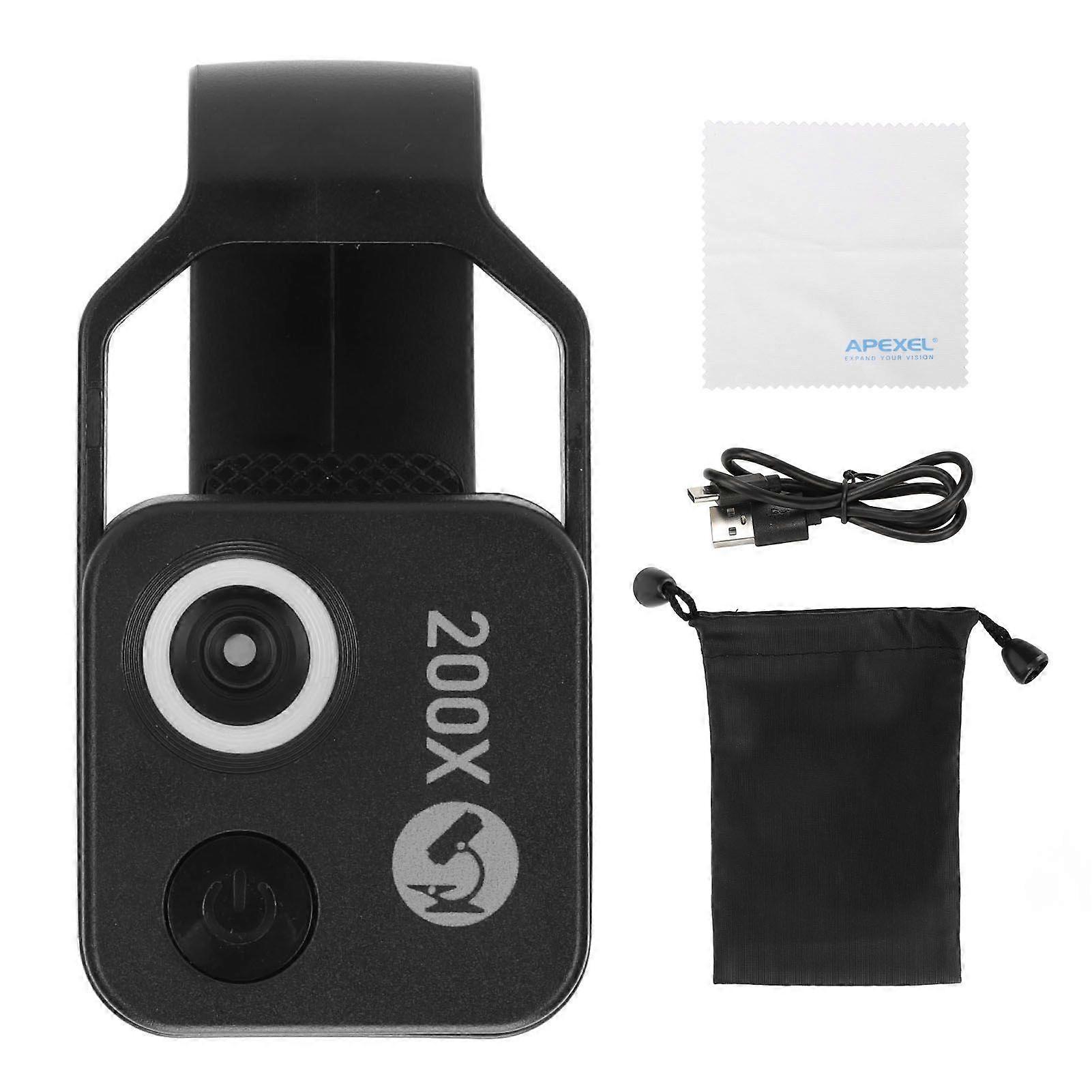 200X Zoom Phone Mini Pocket Microscope with CPL Lens LED Light Mobile Phone External Lens Portable Phone Microscope Camera Black