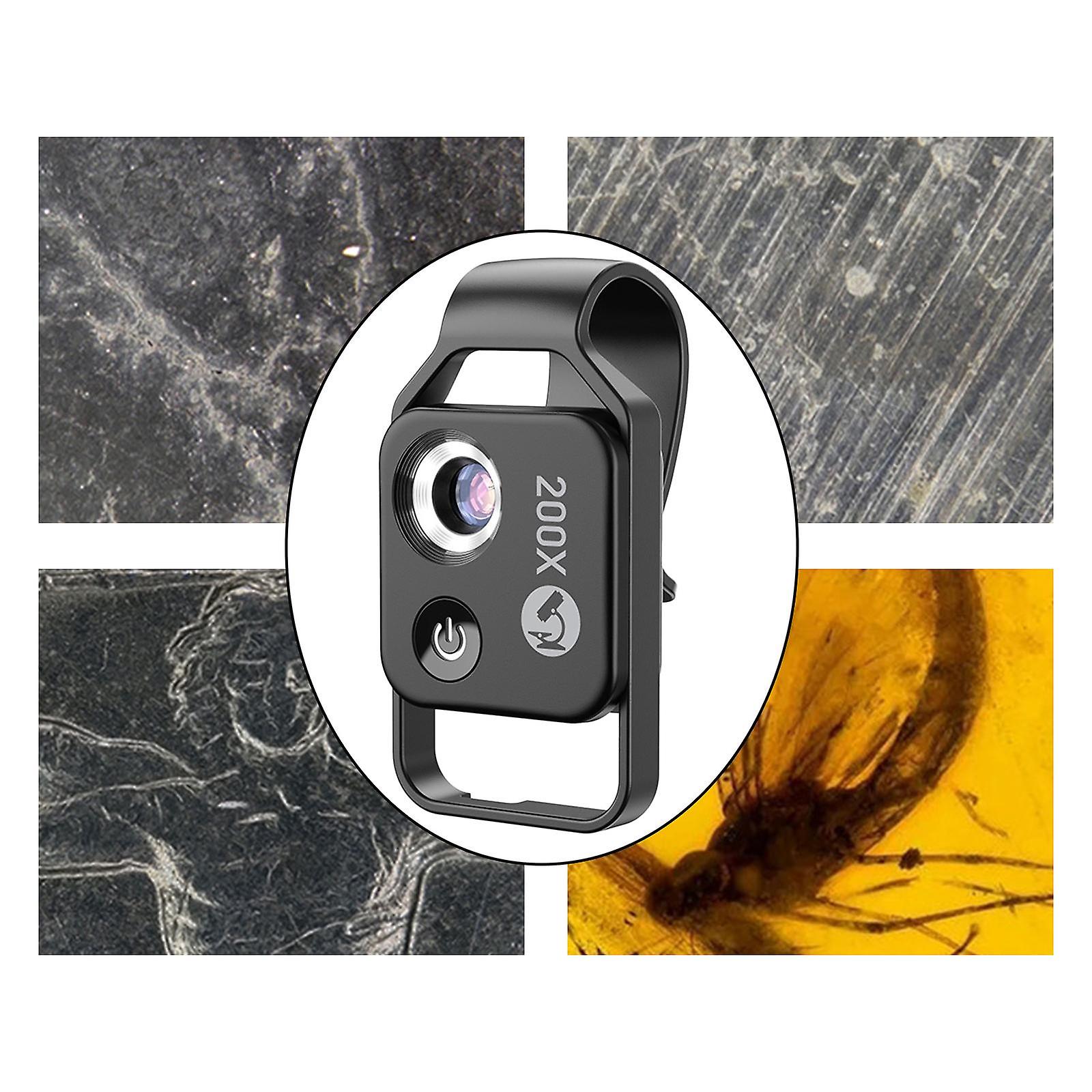 200x Magnification Microscope Micro Lens Mobile 6 LEDs for Smartphones Black