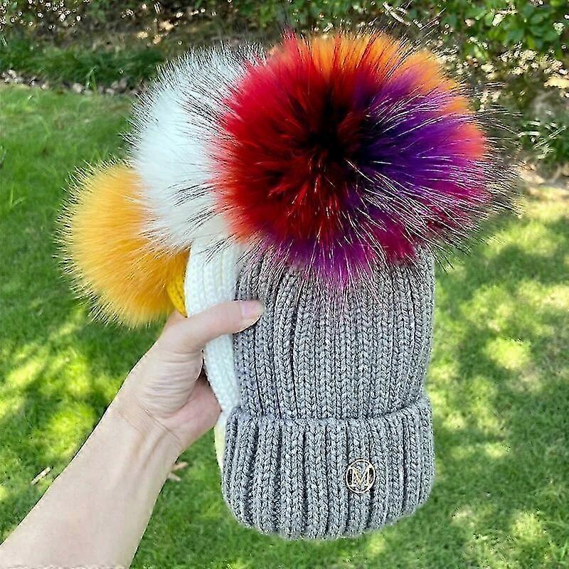 2022 Winter Female Fur Pom Poms Hat Winter Hat For Women Girl 's Hat Knitted Beanies Cap Hat Thick Women Skullies