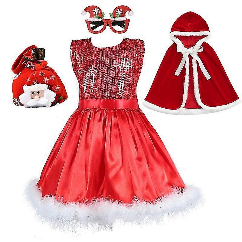 2022 Kids Christmas New Year Suit Costume Cosplay Santa Claus Cloak Bag Outfit Dress For 2-8 Years Girls