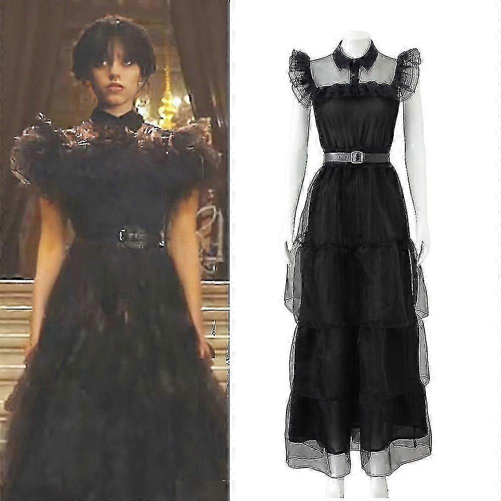 2023 Wednesday Addams Costume For Adult Women Tulle Belt Gothic Costume Wigs