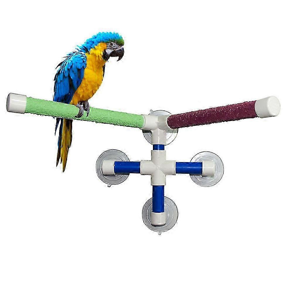 2023 New Suction Cups Pet Birds Parrots Bath Shower Standing Platform Bar Dual Stick Paw Grinding Bracket Station Interesting Perches Toy