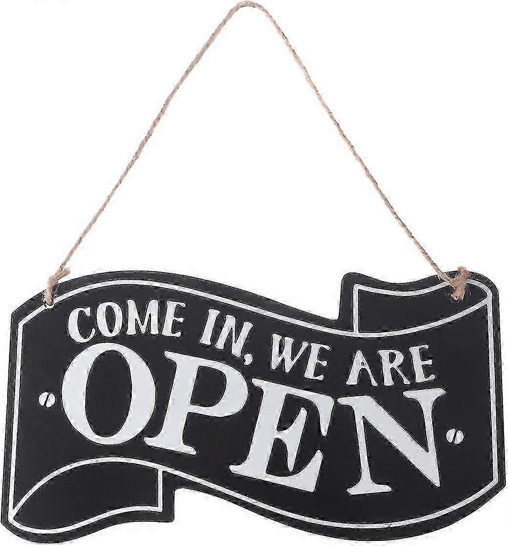 2023 Wooden Open And Closed Two Sided Sign With Rope For Hanging Vintage Business Sign (black)