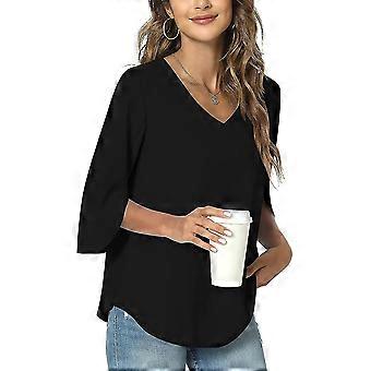 2023 قميص كاجوال نسائي صيفي ، بلوزة تونيك فضفاضة برقبة V للطماق ، بلوزة شيفون مقسمة 3/4 أكمام