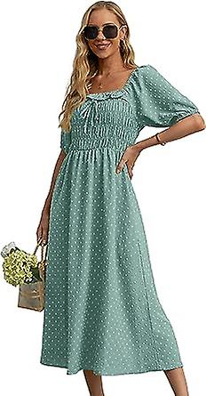 Women's Square Neck Midi Dress 2023 - Vintage Backless Puff Sleeve High Waist Ruffled A Line Flowy Dres