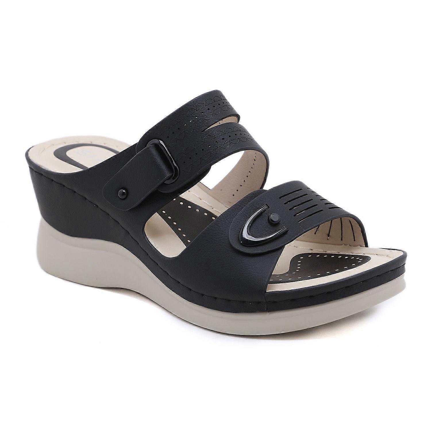 2024 new women's fashion casual wedge-heeled beach sandals soft-soled low-heeled shoes