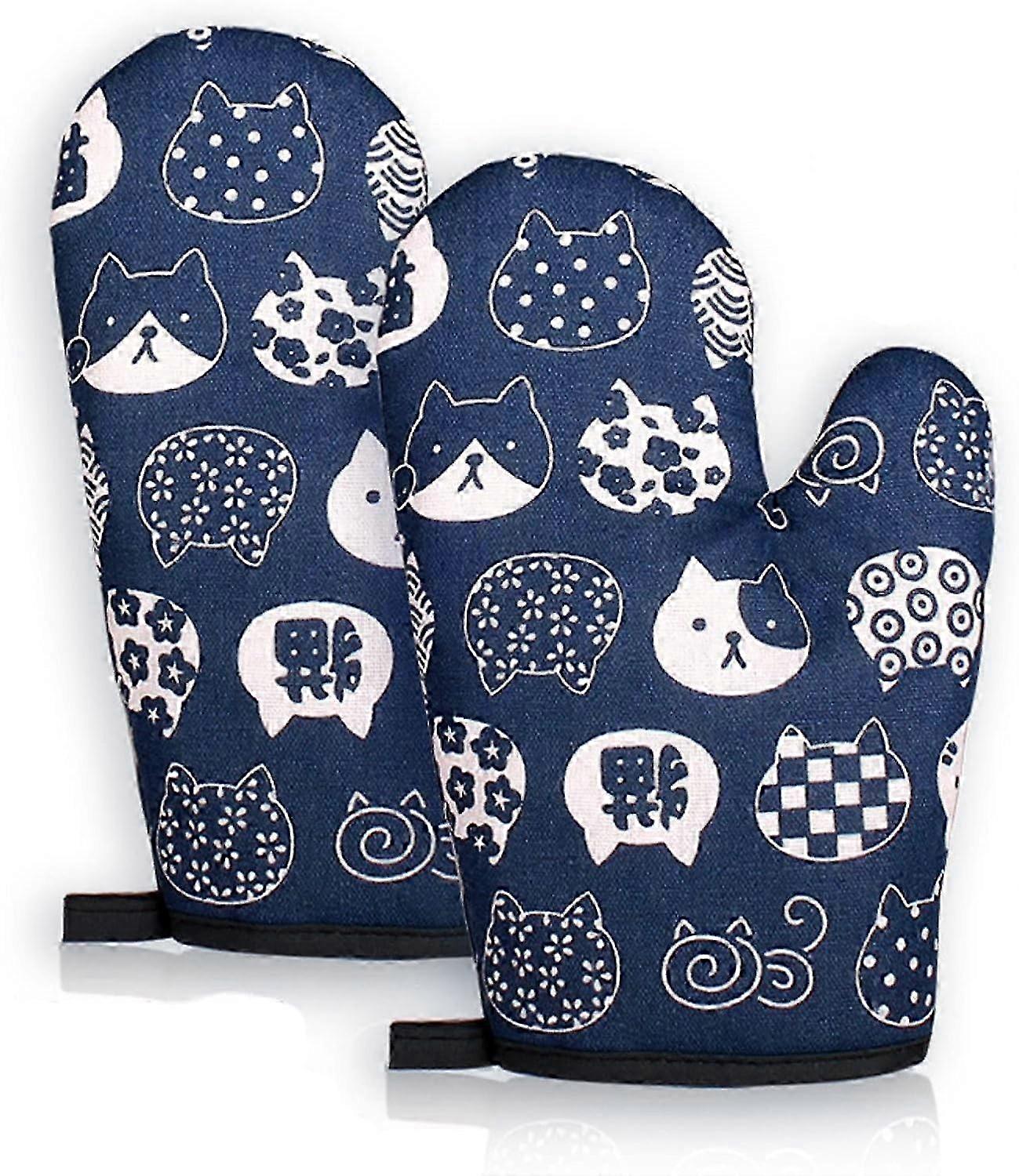 2024 Suitable Oven Gloves Heat Resistant Cooking Gloves, Cotton Lined Insulated Quilted Cute Cat BBQ Gloves With Hanging Loops For Safe Kitchen Cookin