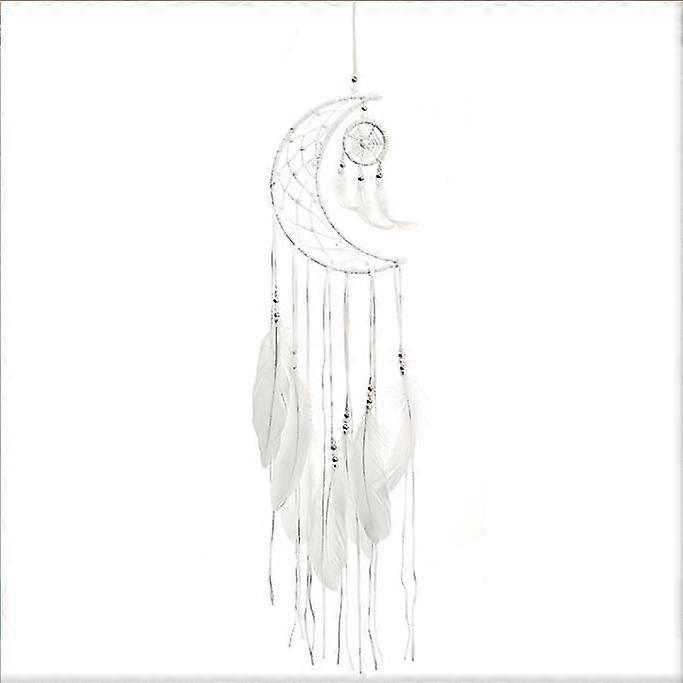 2024Dream Catcher New Moon Design Handmade White Feather Wall Hanging Home Decoration(White Moon)1pc