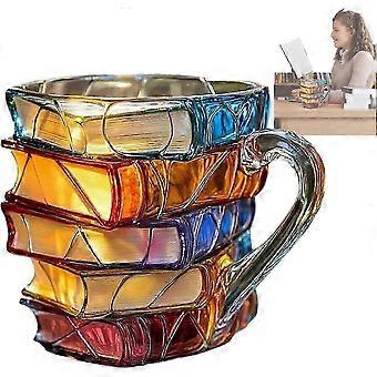 2025 الجدة 3D رسمت الكتب كوب القهوة ، الكتب المكدسة الفريدة على شكل كوب القهوة هدايا لمحبي الكتب