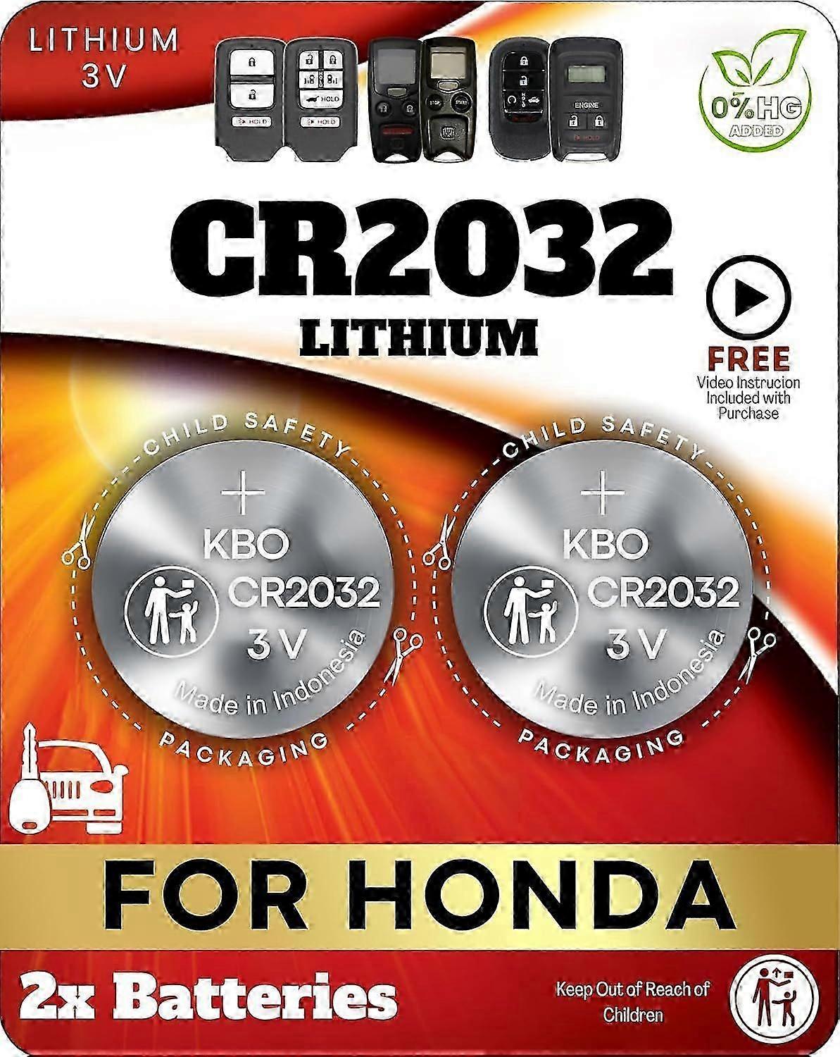 Stable OEM-Level Performance Each battery delivers 3V power output and consistent signal strength, using lithium cells built to meet original equipment quality standards.Simple Do-It-Yourself Installation Open your remote with a household coin or flathead tool, replace the battery, and snap the fob shut. Step-by-step video instructions are provided to guide the process.Fresh, Individually Sealed Cells Batteries arrive individually packed to help maintain performance and shelf life while reducing exposure to handling.Designed for Honda Smart Key Fobs This CR2032 2-pack battery set is made to fit Honda smart remote systems, including models such as Accord, Civic, CR-V, Pilot, Odyssey, Fit, Ridgeline, HR-V, Passport, Insight, Crosstour, Clarity, and CR-Z.Customer-Focused Assistance Our support team is available to help with product questions or concerns, ensuring a smooth buying experience from start to finish.