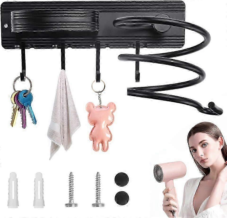 2025 Latest Model Spiral Wall Mount Hair Dryer Holder with Hooks, Screws and Nuts(Black)