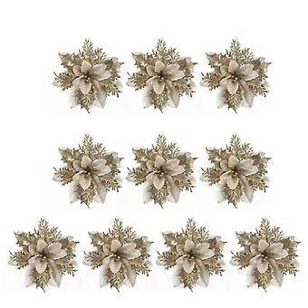 2025 Latest Model 10Pcs/Set Christmas Artificial Flower Glitter Leaves Red Golden Silver-c