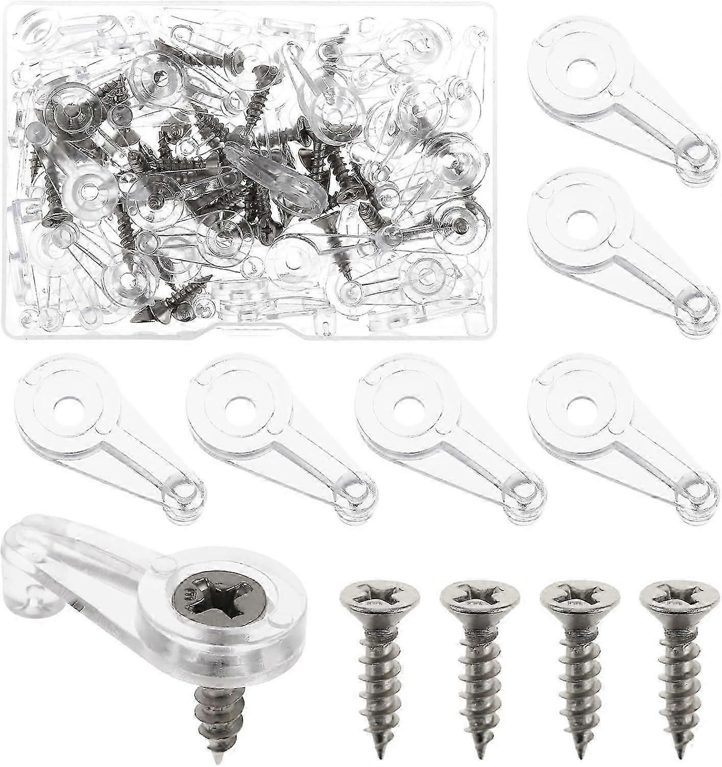 Pack Contents: You will receive a 50-piece glass retainer clips kit, which includes 50 glass panel fixing clips and 50 screws, sufficient quantity and thoughtful assembly, it can meet your various daily needs and make your life more convenient.Durable Material: These cabinet glass retainer clips are made of plastic and the screws are made of metal, durable and strong, not easy to deform, lightweight, easy to use, very practical, cabinet door glass retainer clips will make your life more convenient.Easy To Install: Our glass door retainer clips with screws is compact to install, you only need to drill some holes in the cabinet, wall, door or wherever you want, then fix the glass and the clip, and finally tighten the screws, the installation is simple and convenient.Dimensions: The glass retainer clips for cabinet doors is approximately 25mm/0.98" long and provides a 4mm/0.16" offset, (for more size details please refer to the images before selecting) The clear colour and miniature appearance of the glass clips for cabinet doors ensures that it is almost unnoticeable when in use and does not affect the decorative feel of doors, cabinets and glass.Wide Range Of Applications: The glass panel retainer clips is mainly used to fix the screen on glass, windows, mirrors, glass doors, cabinet door openings. It is widely used in daily life. Cabinet door glass retainer clips can be installed quickly and easily, and is a good addition to your daily life helper.