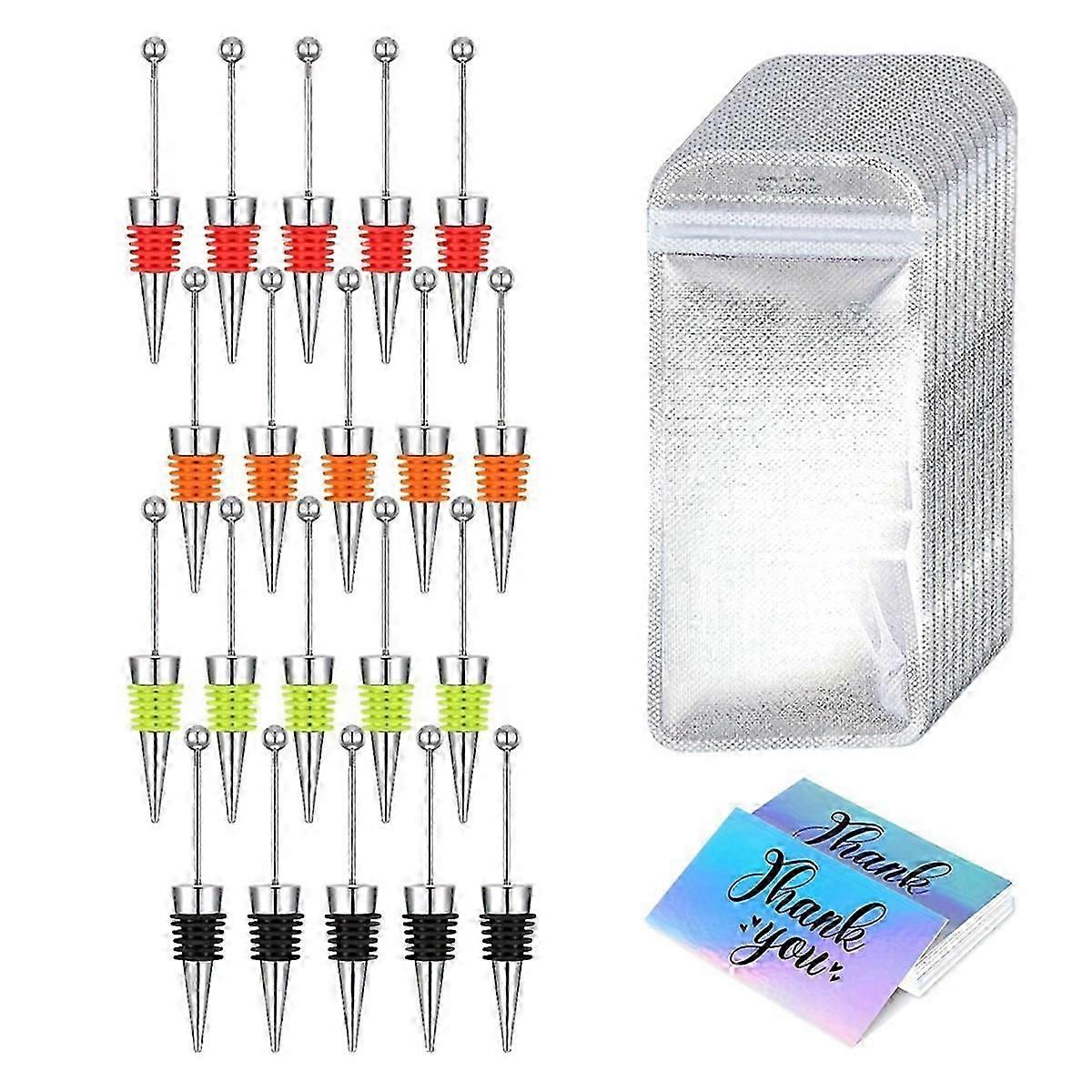 Wine Stopper Set: The bright colors are designed to match your event's theme, adding fun and brightness to your bottles; Whether you're hosting a small gathering or a large event, these wine stoppers a continuous and interrupted wine tasting experience. Ideal for DIY Projects: show your creativity with our wine stoppers; This allows you to employ your imagination and create your own personal bottle stoppers; Simply twist the top bead and string your favorite beads (not included in the package); No additional tools are required, making it a fun and beneficial experience. Fits Most Wine Bottles: the bead wine stoppers are approximately 4.72 x 0.79 inches/12 x 2 cm in size and are designed to fit most wine bottle sizes; This is suitable for wine bottles with an inner diameter of about 4.72-7.87 inches, ensuring a tight and ideal fit; This helps to keep your wine fresh. Quality Materials: the wine bottle stoppers are made of quality alloy and silicone, demonstrating the reliability and durability you need; In addition, it is safe, and not easy to deform or fade, supporting you for a long time usage. Nice Gift: these wine stoppers are safe and practical for long term use; Each stopper needs to be manually cleaned after use; They as a housewarming gift for friends and family and can also be as presents for holiday parties, weddings, and bars; Enjoy the slow life with these beautiful wine stoppers. Tips:The picture is a high-resolution rendering. The product may be updated constantly, Due To Different Batches, The Actual Product May Have Slight Differences Or Color Differences, Which Does Not Affect Use. Colour:As Shown Material:Metal Package Contents: 20 * wine bottle cork beaded rods (4 colors, 5pcs of each color) 20 * thank you cards 20 * pearlescent bags Only the above package content, other products are not included. Note: Light reflection and different displays may cause the color of the item in the picture a little different from the real thing. The measurement allowed error is +/- 1-3cm.