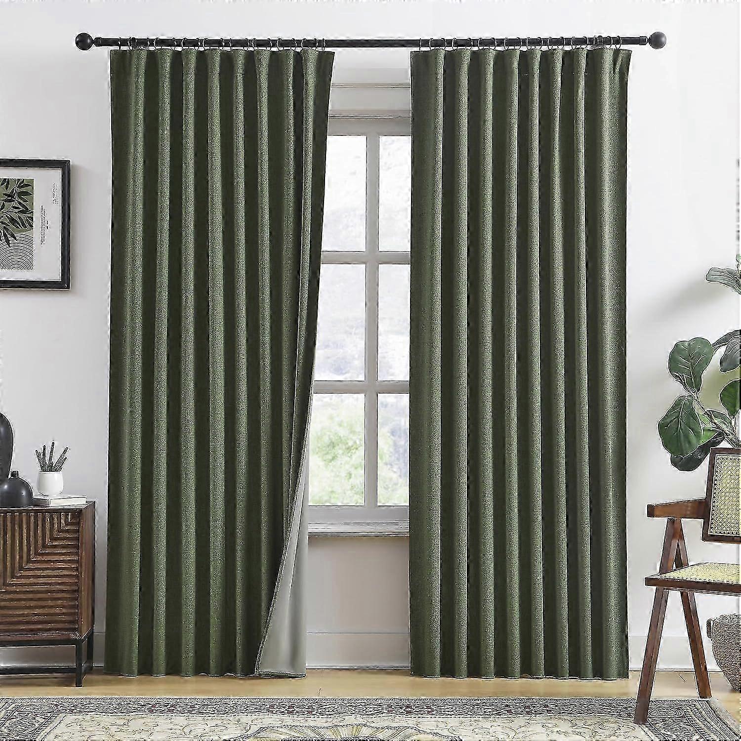 2025 Latest Model 90 Inch Long Linen Blackout Curtains 2 Panels Set, Back Tab Pinch Pleated with