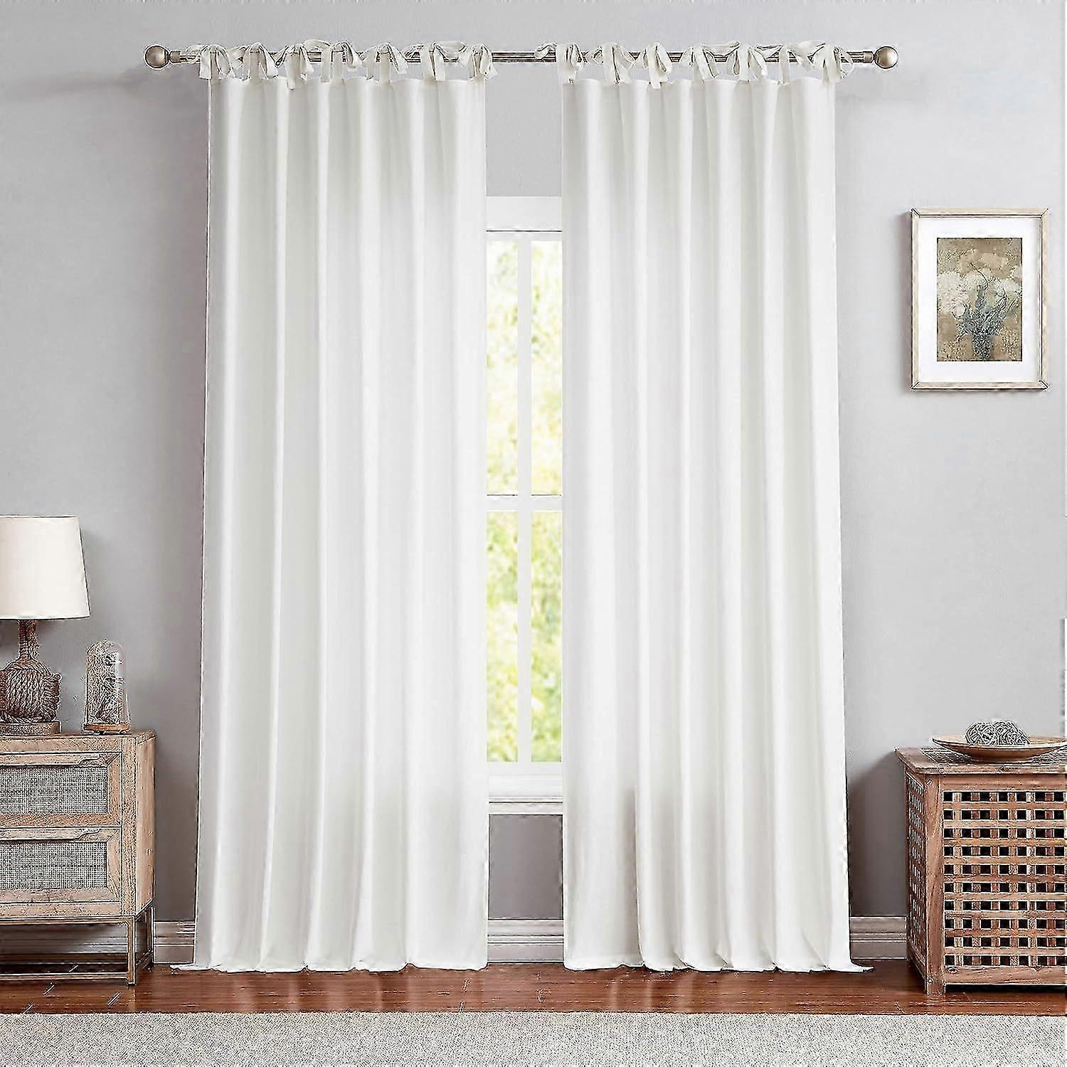 2025 Latest Model White Tie Top Curtain Semi Sheer Window Treatment Linen Cotton Blend Decorative