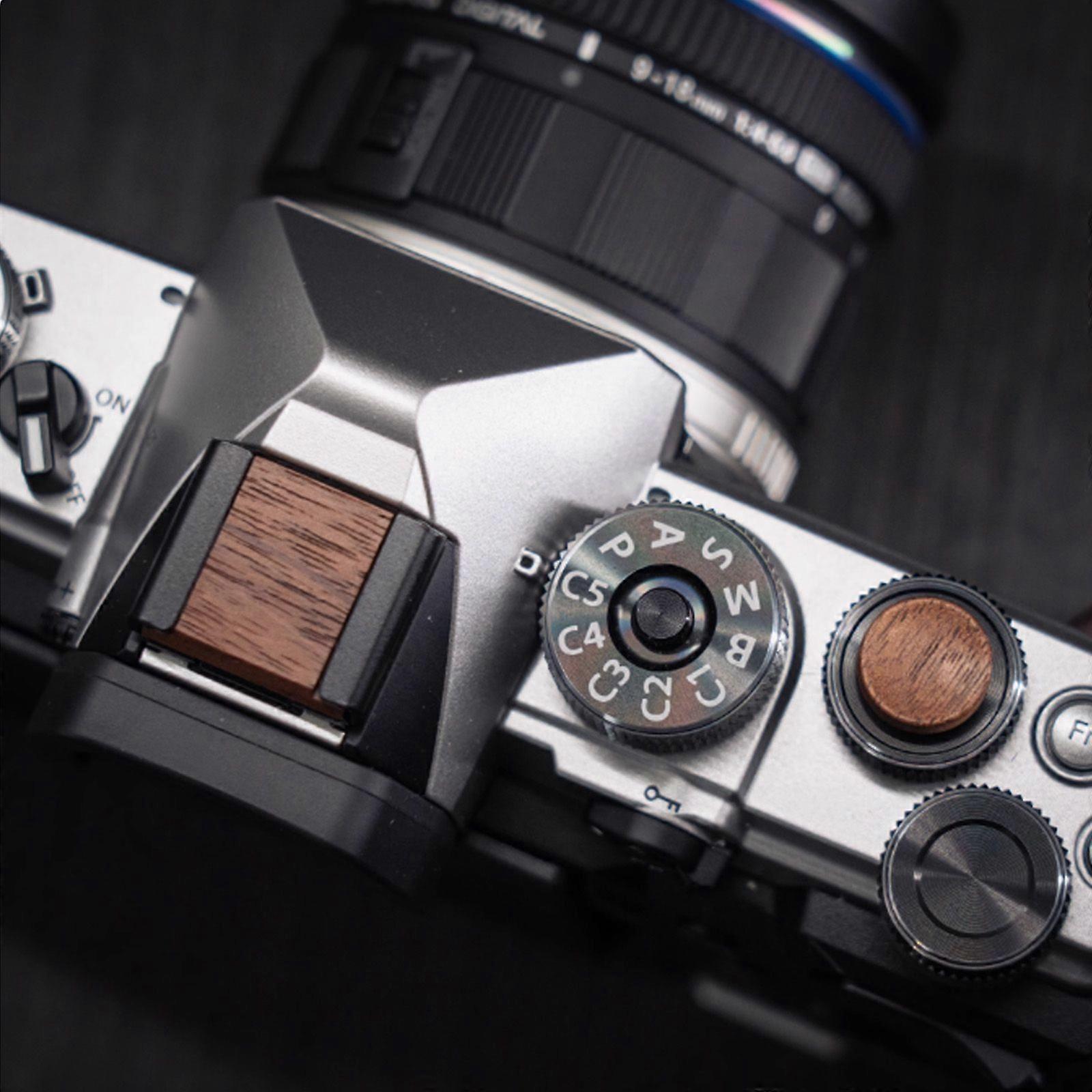2025 Wood Shutter Release Button + Hot Shoe Cover Cap Set For om5 Olympus dt