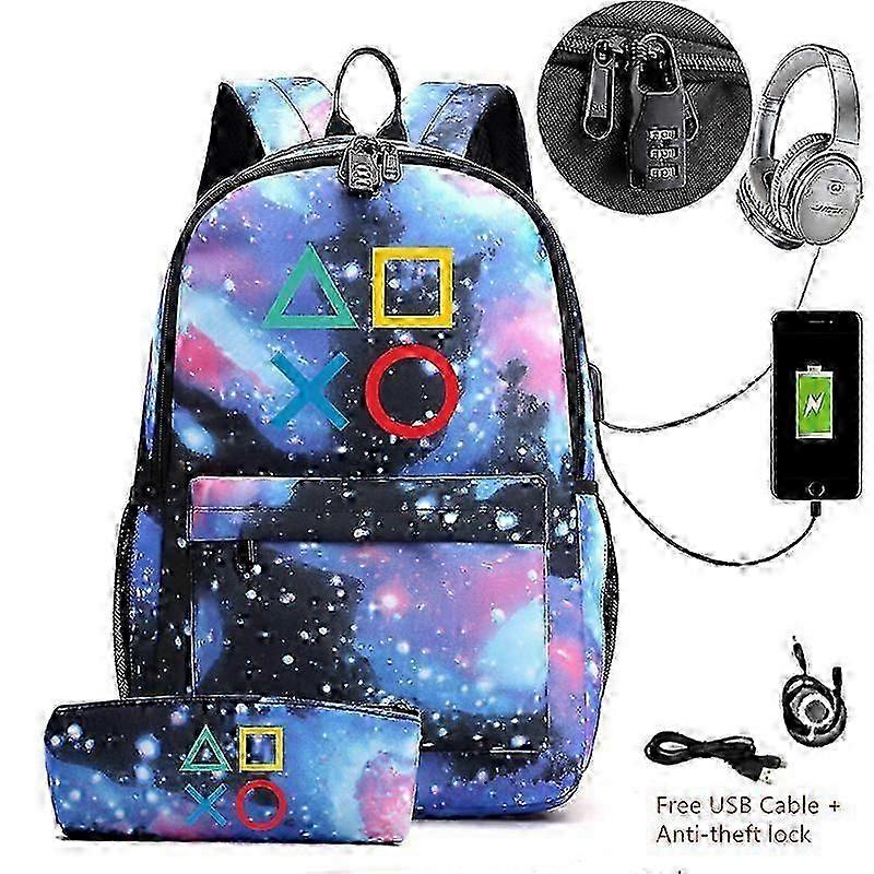 2025 2 pcs/lot PS4 Playstation Canvas Backpack With Pencil Case School Bag Usb Charging School Bag Laptop Sports Mochila Escolar
