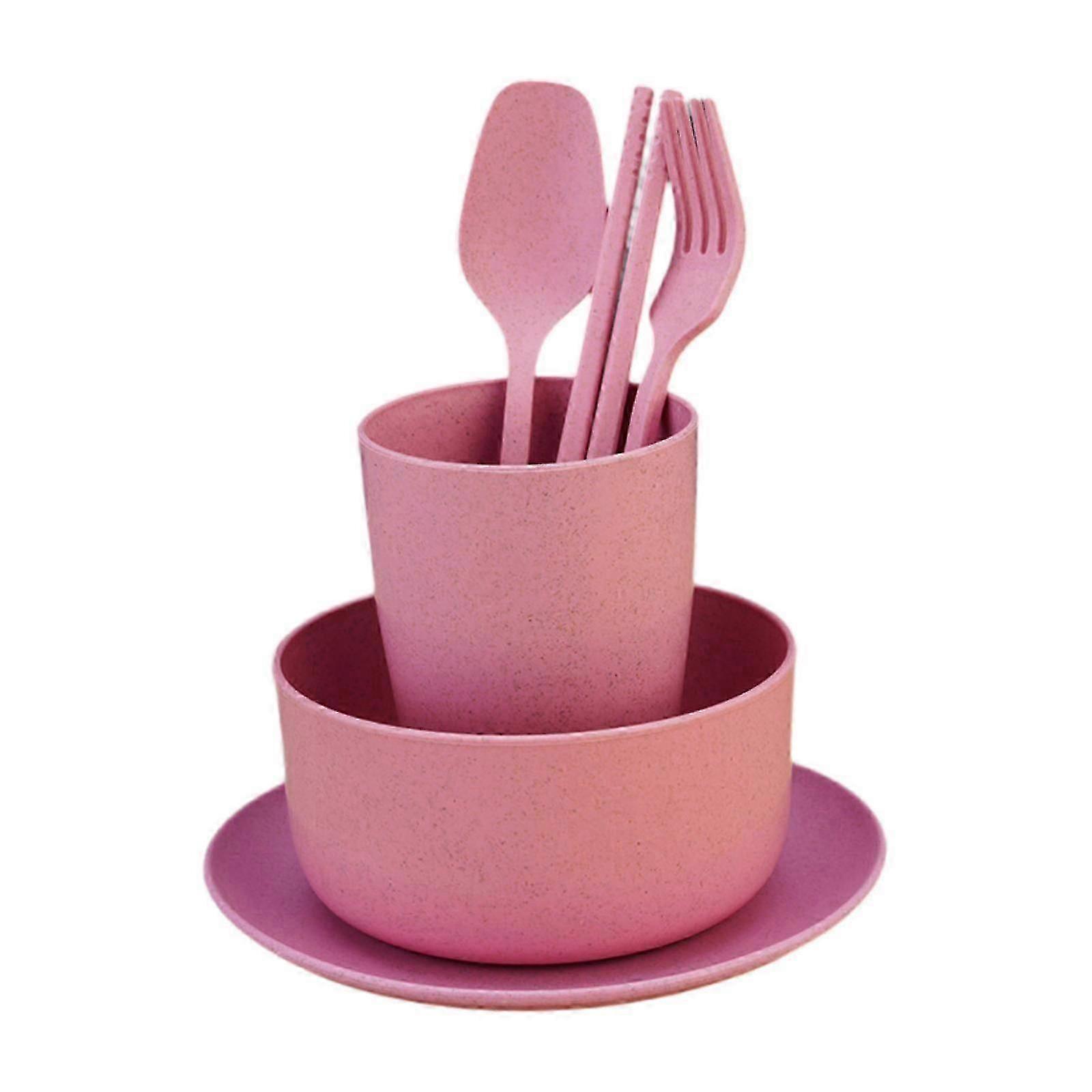 2025 6x Reusable Straw Dinnerware Set Unbreakable Dish Set Plates Spoons Cups Utensils Set Plates and Bowls Set for Picnic Parties RV