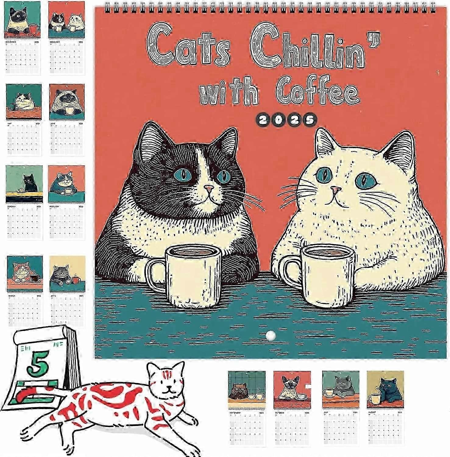 2025 Cat Calendar- Cats Chillin\' with Coffee, 8.5" 12 Monthly Coffee Cats Wall Calendar 2025 Planne