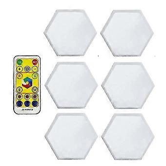 SPECIFICATIONS Wattage: 0-5W Voltage: 5V Usage: HOLIDAY Type: Night Light Switch Type: Remote Control /Touch Control Shape: DIY Shape: Hexagon Remote control battery: 1*CR2032(not included) Rated Power: 1W/each Power Supply: 3*AAA battery(not included) Power Source: Dry Battery Power Generation: Touch Model Number: Touch Sensor LED Night Light Light Source: LED Bulbs Light Color: RGBW Lamp Size: 70x35x25mm LED Type: 6PCS SMD 2835 Item Type: Night Lights Is Smart Device: No Is Bulbs Included: Yes Is Batteries Required: Yes Is Batteries Included: No Certification: CCC,ce,ROHS Body color: White Body Material: ABS Battery Type: AAA Average Life: 50000 hours Note: Due to the light and screen setting difference, the item's color may be slightly different from the pictures. Please allow slight dimension difference due to different manual measurement. Sold by-DIMEANI official store