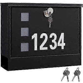 2025 Locking Mailbox Wall Mounted, Metal Postbox with Three Sets of Mail Box Number Stickers, 4 Keys, 14.4' x 4.5' x 11.2',, Black, AMB11B