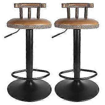2025 Set Stools With Backrest Of 2 Retro Adjustable Leather Bar