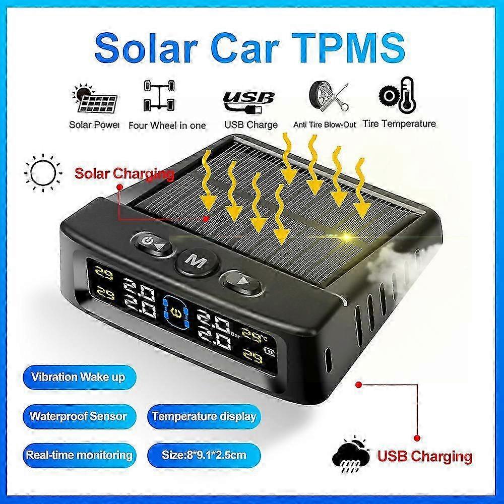 2025 Solar TPMS Car Tire Pressure Alarm Device Auto Tyre Pressure Security Colorful Digital Display 4 External Sensors Tire Pressure Temperature Warni