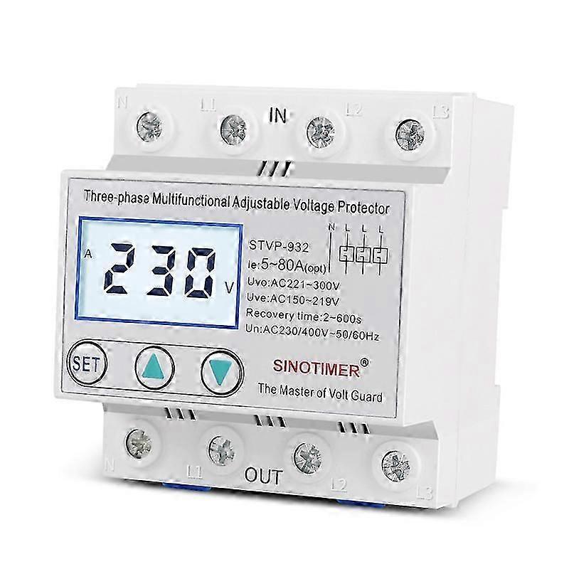 2025 STVP-932 80A Three-Phase Digital Display Self-Resetting Adjustable Intelligent Multi-Function Over-Voltage