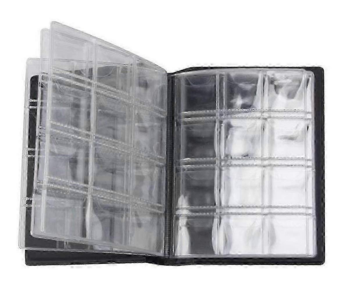 Materials: PVC. Color: Black cover and transparent sides. Package: 1 piece. Size: Length: 15.5 cm or 6 inches. Width: 11.2cm or 4.4in. Net weight: 102 g. Artificial leather and PVC materials, sturdy and durable, safe and non-toxic, no peculiar smell and harmless to human body. Total 120 pockets, suitable for all kinds of coins less than 28mm in diameter, moisture-proof and protect the coins well, prevent the coins from being oxidized and discolored. Necessary accessories for collectors, easy and convenient to use, and no desire to look at the coins after storage.