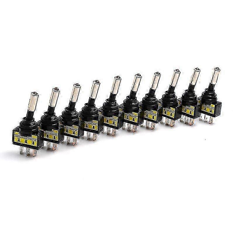 This item is a pack of 10pcs toggle switches, which features 3 pin connector, push for on and release for off. It is for 12V motorcycle, car, boat and other outdoor projects, this switch can be used for headlights, fog lamps, work lamps etc. Features - LED color: Red. - Material: ABS Plastic, metal. - Working voltage: 12V. - Rated current: 20A. - Switch type: 3 PIN. - Features OFF/ON type, push for on and release for off. - for 12V motorcycle, car, boat and other outdoor projects. - The switch can be used for headlights, fog lamps, work lamps etc. Note: Due to the light and screen setting difference, the item's color may be slightly different from the pictures. Please allow slight dimension difference due to different manual measurement.
