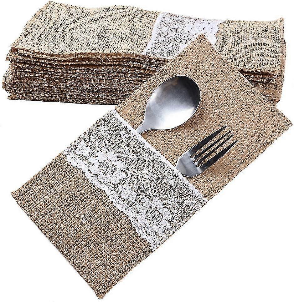 20pcs Burlap Bag Lace Covered Pouch Cutlery Holder Fork Jute Vintage Christmas