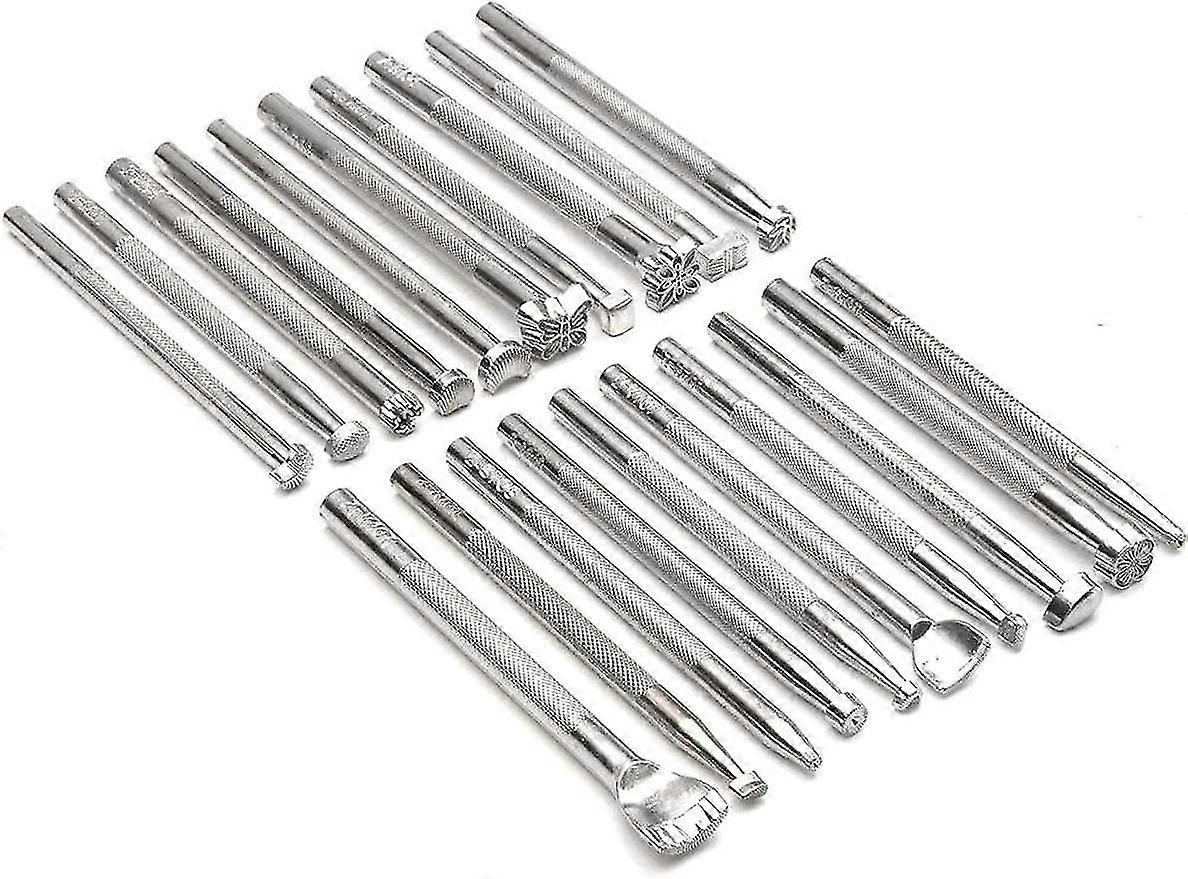 Leather Craft Stamp Set,leather working tools good for professions and amateurs. 20 types leather stamp set which including popular leather stamping tool for the beginner,such as flower,butterfly,and another background filling shape.To help you create a striking impression with your work. Leather Carving Stamps Tools forged with high-quality stainless steel,heat treatment of head quenching,high hardness and good wear resistance. DIY Making,you can do your own special DIY with these 20 kinds different stamps. Very easy for beginners and professionals to operate.Good for sewing or repairing canvas leather,shoes,soles. Perfect Christmas Gift Leather Stamping Tools Professional tools for leather craft working to print patterns on the leather,Make your wallet, belt or bag more personalized and unique.antity: 1 set(20pcs)