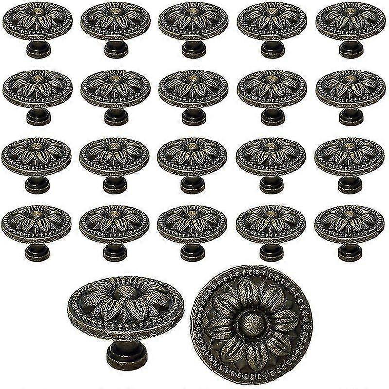 20pcs Vintage Cupboard Door Drawer Knobs 35mm Flower Design Brass Kitchen Cabinet Handles, For Dresser And Furniture Cupboard, Antique Bronze