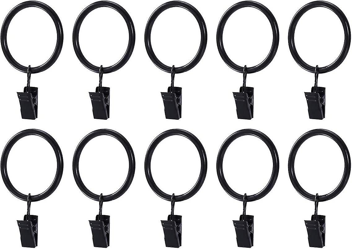 20pcs Rustproof Curtain Rings With Metal Curtain Clips Hook Clips (black)