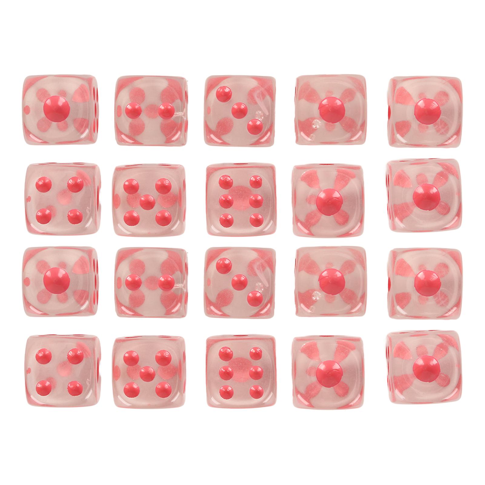20pcs Dice Set 6 Sided Transparent Dices Rounded Corner Dice for Board Games and Teaching Math Transparent with Pink Spots