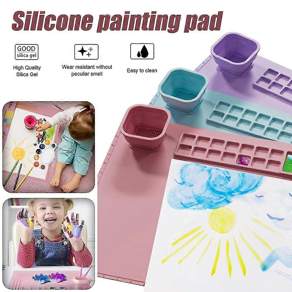 Silicone Painting Mat, 20x16 Inch Non-stick Silicone Craft Mat For Resin Casting, Art Craft Sheet Pad With Cleaning Cup