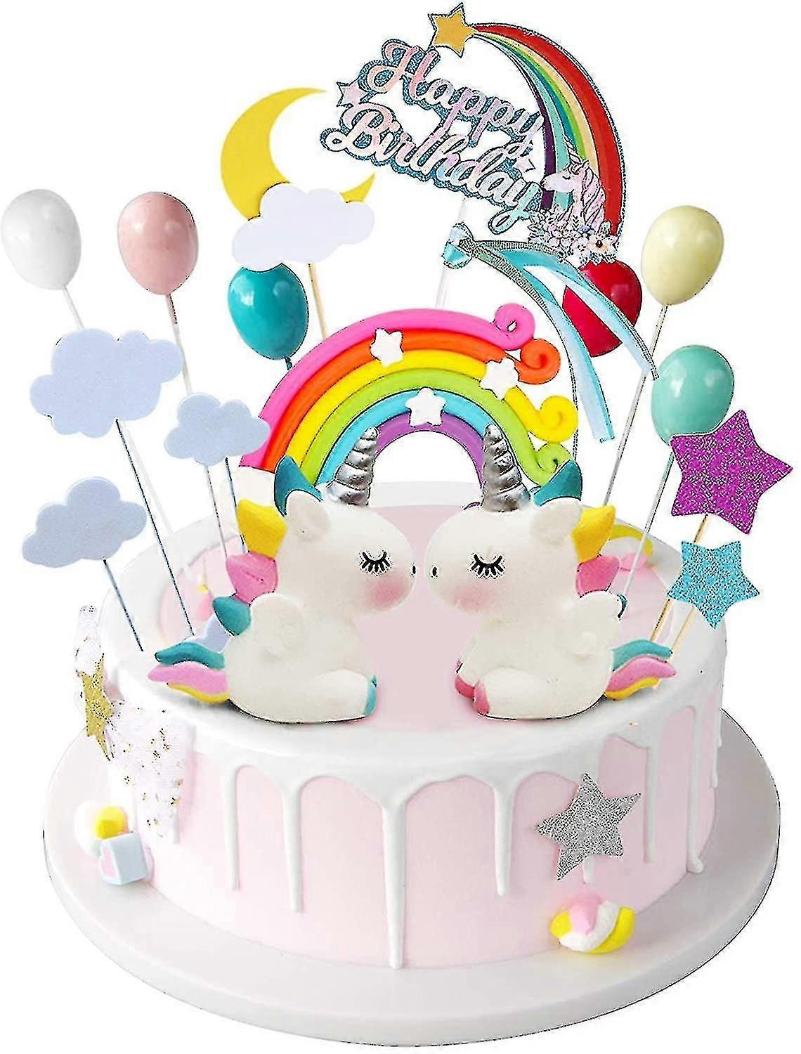 21pcs Unicorn Cake Topper Kit Cloud Rainbow Balloon Happy Birthday Banner Cake Decoration