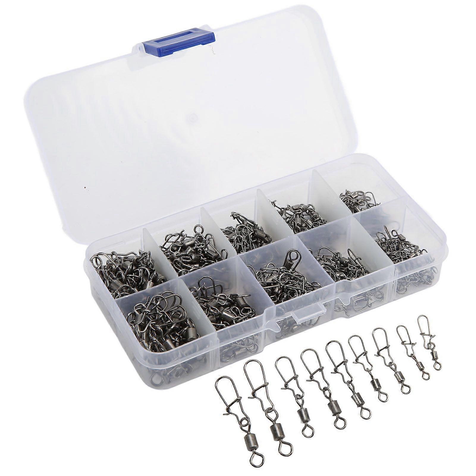 210pcs Fishing Swivels Snaps Set Stainless Steel Rolling Barrel Swivel with Safety Snaps Fishing Line Connector