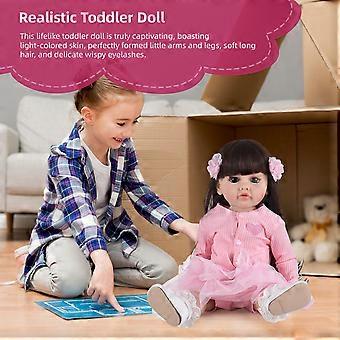 21.6in ريبورن سيليكون كامل الجسم نابض بالحياة لطيف حمام دمى الوردي اللباس طفل هدية دمية مع زهرة دبابيس الشعر حفاضات مصاصة وزجاجة الحليب