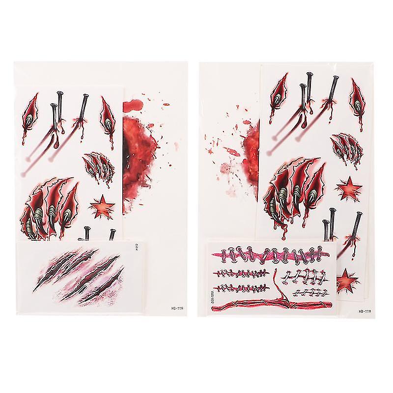 21X14cm Assorted Color Temporary Tattoos 26pcs Facial Sticker Scar Sticker Fake Scar Decal Bloody St