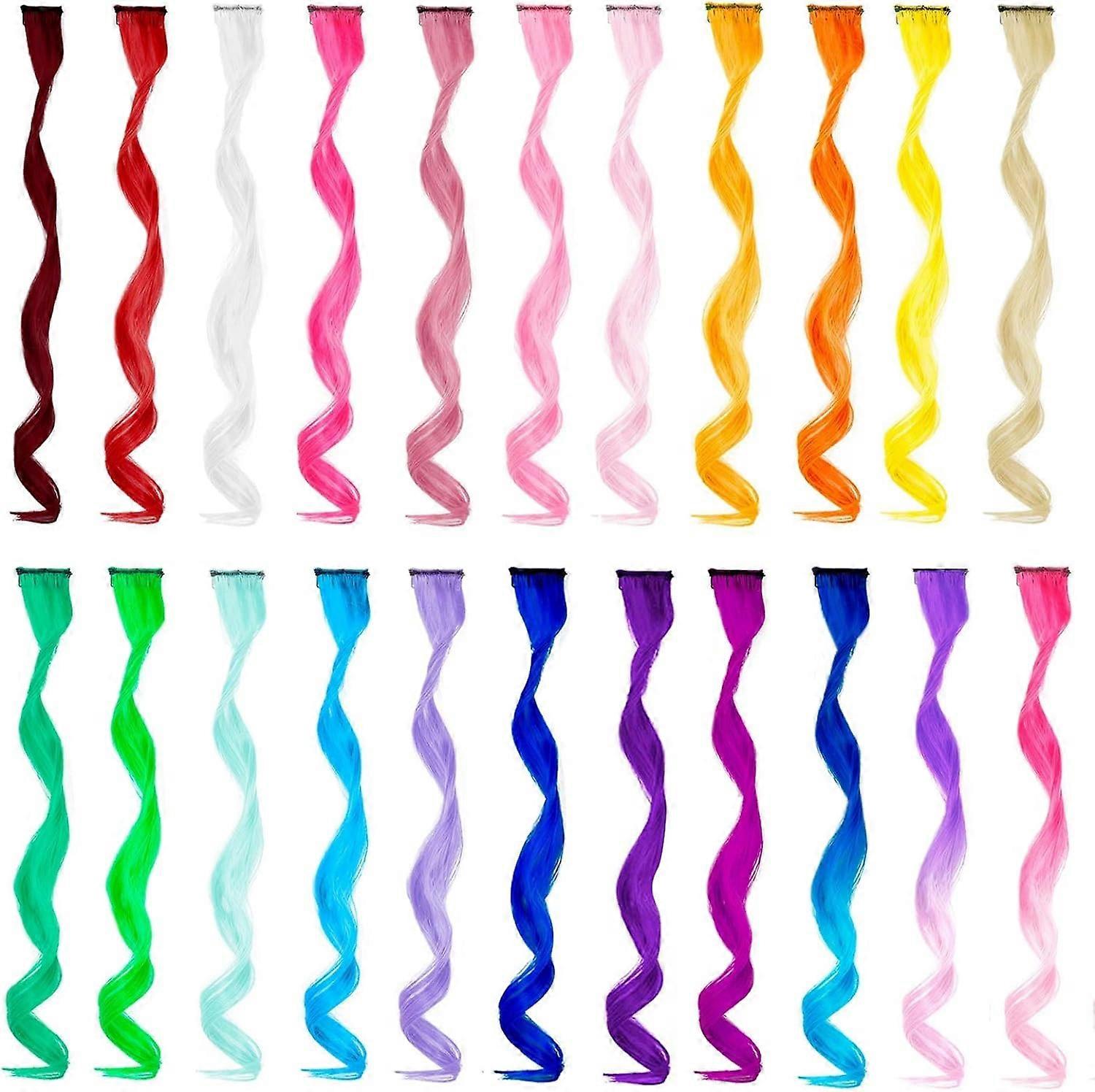 22 PCS Rainbow Colored Hair Extensions Clip In for Girls 22 Inch Colorful Curly Wavy Hair Extensions world book day Gift for family/friend