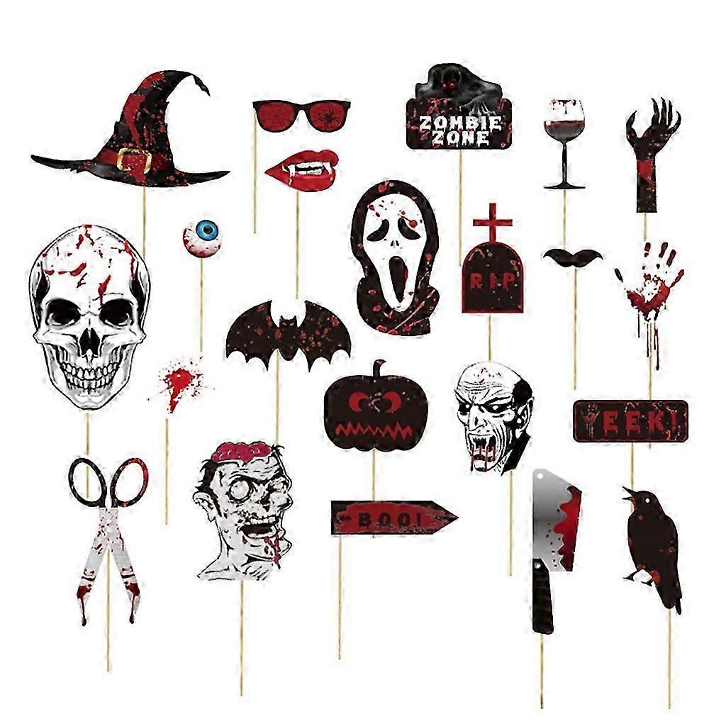 22 Pieces Halloween Zombie Photo Booth Props Horror Scary for Vampire Witch Hat Skull Ghost Bloody Cake Topper Theme Party Supplies Decoration